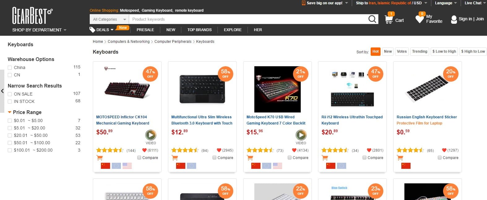 یکی از نگرانی های بسیاری از کاربران ایرانی، عدم سرویس دهی فروشگاه های خارجی به مشتریان داخل ایران است. اما Gear Best چنین محدودیتی نداشته و تمام وسائلی که در آن به فروش می روند قابلیت ارسال به نقاط مختلف جهان و از جمله ایران را نیز دارند. بسیاری از کالاهای این فروشگاه به صورت رایگان به ایران ارسال می شوند و برای بسیاری دیگر از آنها نیز هزینه بسیار ناچیزی (معمولا کمتر از 1 دلار تا 2 دلار) دریافت خواهد شد. امکان پرداخت هزینه ها با استفاده از کارت های اعتباری بین المللی از جمله مستر کارت، ویزا و PayPal نیز در نظر گرفته شده تا هیچ محدودیتی از این بابت برای کاربران وجود نداشته باشد. خرید از این فروشگاه کاملا بی دردسر بوده و به دلیل ارائه کالاهای اصلی و با کیفیت، می توان از خریدی مطمئن اطمینان داشت. برای مشاهده وب سایت و لوازم موجود در آن می توانید از لینک زیر استفاده کنید.