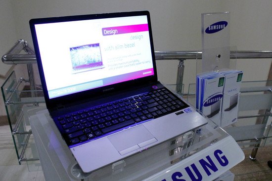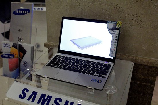 در راهرویی که به سالن مراسم منتهی می‌شد، تعدادی از نوت‌بوک‌های جدید سامسونگ قرار داشت و اولین چیزی که در مورد آنها به چشم می‌خورد، تغییر در نحوه طراحی آنها توسط سامسونگ است. در نوت‌بوک‌های جدید دیگر خبری از خطوط منحنی و موجی شکل نبوده و همه اجزا بسیار ساده و به دور از پیچیدگی در کنار هم قرار گرفته است.