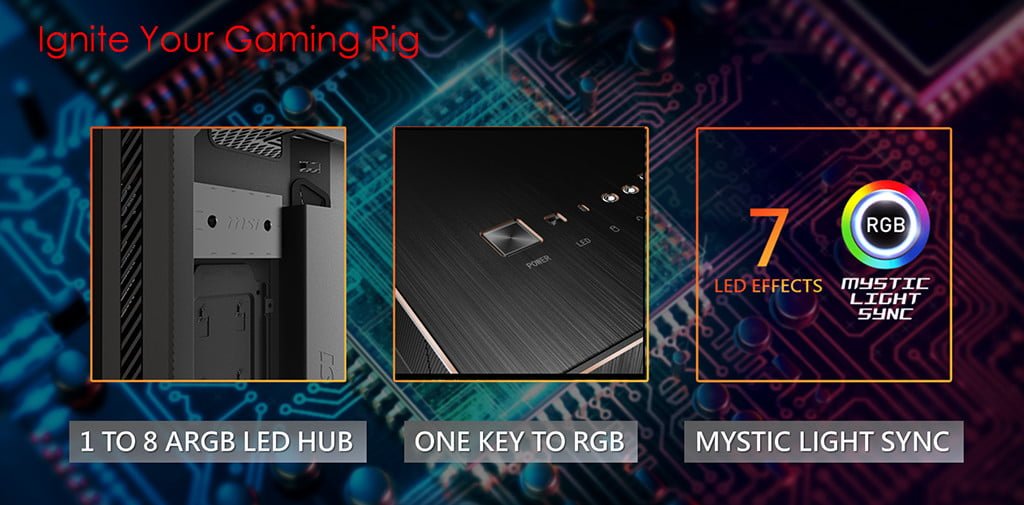 در مدل MPG SEKIRA 500X یک هاب RGB تعبیه شده است که می تواند 1 تا 8 نوار LED RGB را آدرس دهی کرده و یک دکمه فیزیکی اختصاصی هم برای این منظورد در جلوی کیس نصب شده است. حتی امکان نصب عمودی کارت گرافیک به همراه مسیر اگزوز تهویه هم در این سری لحاظ شده است. در پایان به امکان نصب واتر کولرهای 120 تا 360 میلی متری در MPG SEKIRA 500 اشاره می کنیم.