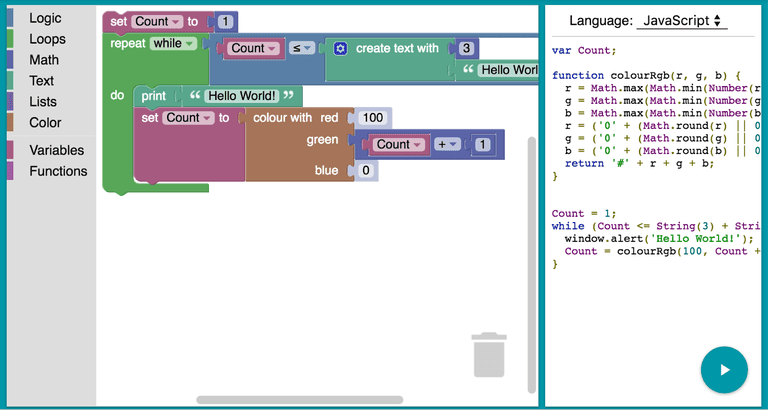 Blockly یک ویرایشگر تصویری زبان برنامه نویسی است که محیطی دوستانه را برای کودکان ارائه می دهد. Blockly شامل دستوراتی به زبان های  JavaScript، Python، PHP، Lua و Dart است. در حقیقت می توانید کد را در کنار صفحه خود مشاهده کنید و آنها را به هم پیوند دهید. همچنین می توانید زبان های برنامه نویسی را در تغییر دهید تا تفاوت های موجود در دستورات زبان های مختلف را مشاهده کنید. این زبان برای طیف گسترده تری از سنین، از جمله نوجوانان و بزرگسالان نیز مناسب خواهد بود. گوگل با کمک MIT زبان Bolckly را طراحی کرده است و نسل بعدی Scratch را بر اساس پلت فرم Blockly توسعه داده است. این زبان برای افراد بالای 10 سال مناسب خواهد بود و در سیستم عامل های مک، ویندوز و لینوکس پشتیبانی میشود.
