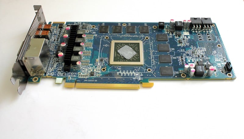 در اطراف پردازنده‌گرافیکی نیز هشت ماژول حافظه GDDR5 ساخت سامسونگ مدل K4G10325FE-HC04 به‌کار رفته‌است. خروجی‌های تصویر شامل دو خروجی DVI و یک mini HDMI است و در گوشه بالا سمت چپ نیز یک اتصال پل SLI در نظر گرفته شده‌است.