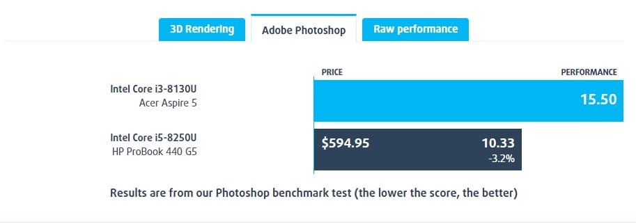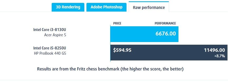 به همین علت این دو CPU کلاس نوت بوک را در چند آزمون اصلی قرار داده و نتایج فوق برای شما عزیزان آماده شده است. این دو پردازنده در لپ تاپ های Acer Aspire 5 و HP ProBook 440 G5 مورد بررسی قرار گرفته اند. شایان ذکر است که این دو نمونه، چندان در نوت بوک های مخصوص بازی و رندرینگ مورد استفاده قرار نخواهند گرفت.