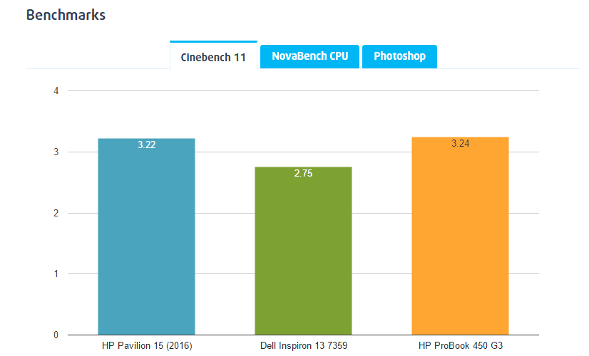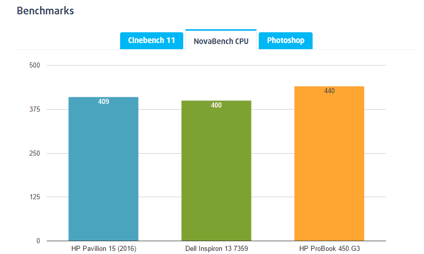 هر 3 پردازنده دارای 2 هسته و 4 رشته پردازشی هستند.تنها پردازنده Intel Core i5-6200U است که به لطف ویژگی Turbo Boost به اوج فرکانس 2.8 گیگاهرتز می رسد.این پردازنده ها در برخی دیگر از موارد فنی مانند Hyper-Threading و VT-x بسیار شبیه به یکدیگر هستند.در این بررسی از 3 نوت بوک HP Pavilion 15، Dell Inspiron 13 7359 و HP ProBook 450 G3 استفاده شده است.ماژول آبی مربوط به پردازنده Intel Core i3-6100H،سبز مربوط به Intel Core i3-6100U و ماژول نارنجی به پردازنده Intel Core i5-6200U مربوط می گردد.