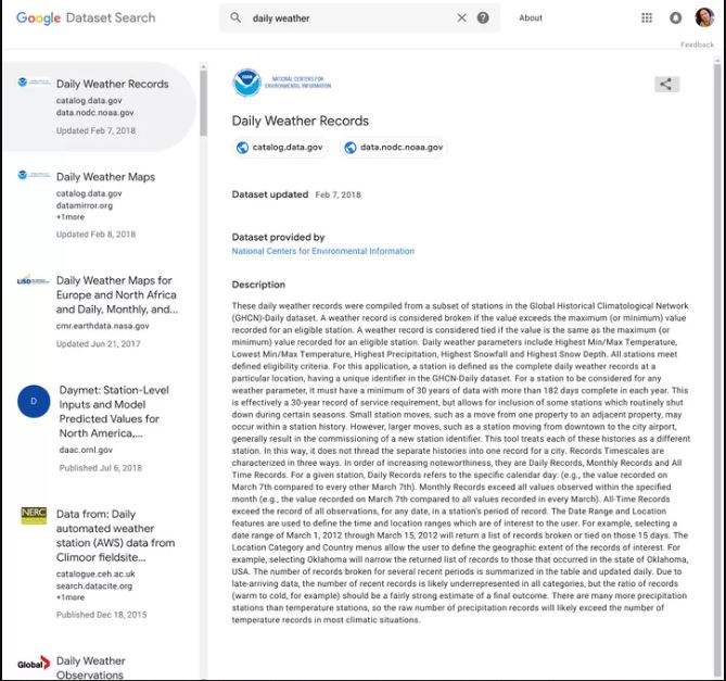 اولین نسخه منتشر شده از جست و‌جو منبع داده شامل علوم اجتماعی، محیطی، اطلاعات دولت‌ها، و منبع داده‌ها برای سازمان‌های خبری مانند ProPublica خواهد بود.
