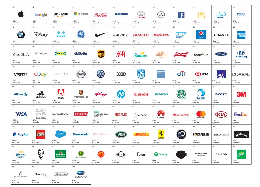 موسسه Interbrand هر ساله لیستی از ارزشمندترین کمپانی‌های جهان منتشر می‌کند. اینتربرند بزرگترین شرکت مشاوره در زمینه برند است و امسال هم مانند سال‌های پیشین Top 100 بهترین مارک‌های دنیا را منتشر کرده است. در سال 2018 رشد کمپانی تولید کننده چینی، Huawei در بازار جهانی بسیار محسوس بوده است.