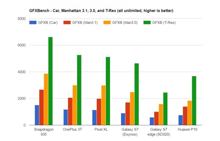 بر این اساس، پردازنده اسنپ دراگون 835 در Geekbench موفق به کسب امتیازاتی در حدود 2000 و 6500 در تست های تک هسته ای و دو هسته ای شده و تمامی رقبای اندرویدی خود از جمله وان پلاس 3T، پیکسل ایکس ال و P10 هواوی را با فاصله پشت سر گذاشته است.