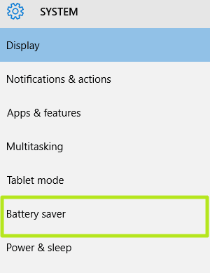 در بخش تنظیمات سیستم باید از پنل سمت چپ وارد Battery Saver شوید تا به تنظیمات و خرابی مربوط به مصرف باتری لپ تاپ دسترسی پیدا کنید.