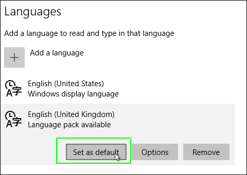 سپس زبان انتخاب شده را به عنوان پیش فرض قرار دهید و بر روی Option کلیک کنید.