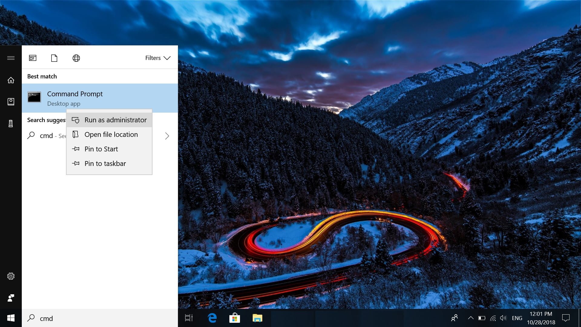 ابتدا در منوی استارت عبارت cmd را تایپ کرده، روی آیکون command prompt کلیک راست کنید و run as administrator را انتخاب نماید.
