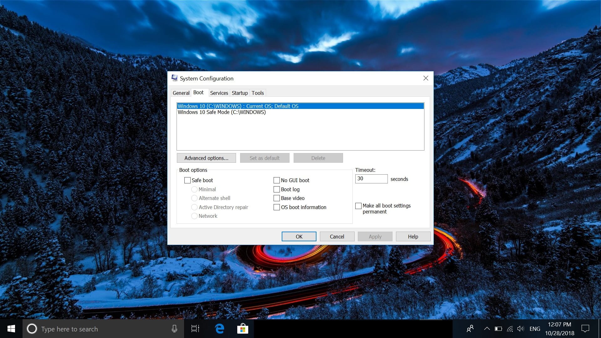پنجره cmd را ببندید، مجددا منوی استارت را باز کرده و این بار عبارت msconfig را تایپ کنید. در پنجره تنظیماتی که به این ترتیب باز شده وارد تب boot شوید تا عبارت windows 10 safe mode را مشاهده کنید.