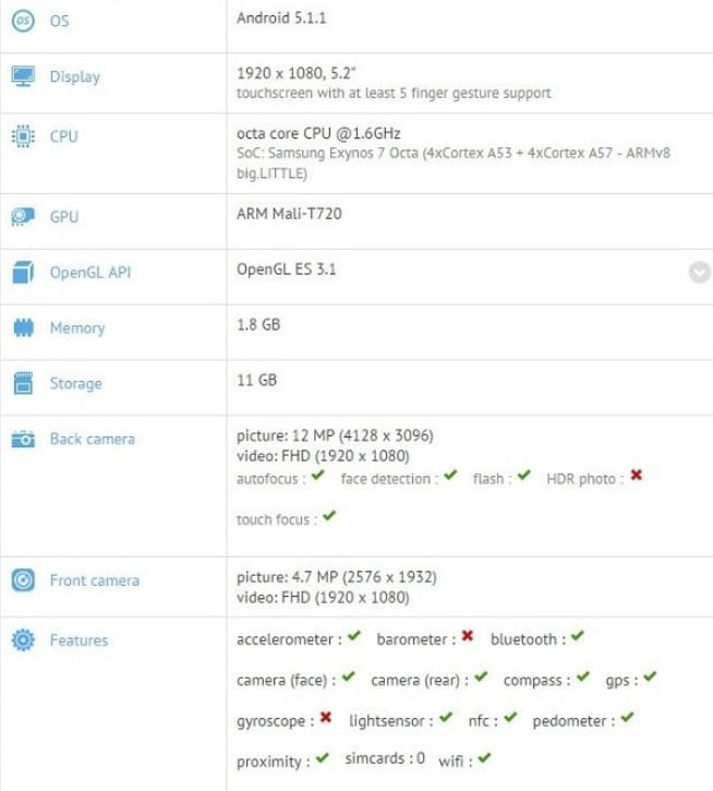 گلکسی A5 صفحه نمایشی 5.2 اینچی با وضوح تصویر 1080p دارد که به تراکم 423 پیکسل بر اینچ ترجمه می شود. این گوشی با چیپ ست هشت هسته ای Exynos 7 در حداکثر فرکانس کاری 1.6 گیگاهرتز جان می گیرد و 2 گیگابایت RAM و 16 گیگابایت فضای ذخیره سازی داخلی دارد. پردازنده گرافیکی Mali-T720 بوده و دوربین اصلی و سلفی به ترتیب از سنسور 13 و 5 مگاپیکسلی برخوردارند.