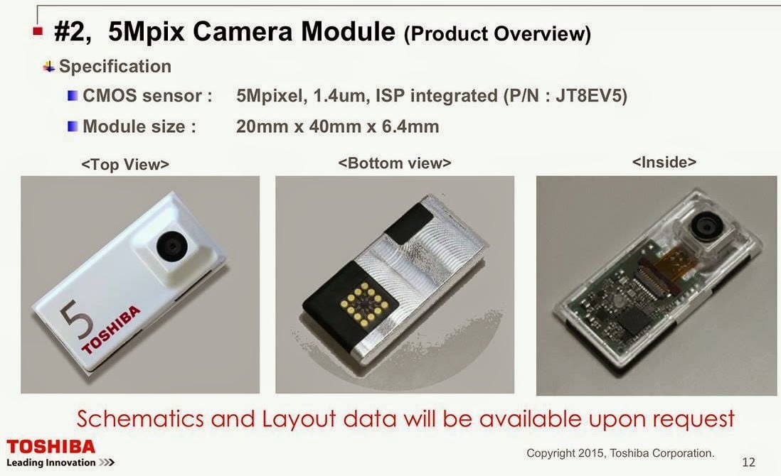 این نمایشگاه فرصت مناسبی برای شرکت هاست تا توانایی خود را با ساخت ماژول های اختصاصی به نمایش بگذارند. شرکت ژاپنی توشیبا نیز که به روال معمول ژاپنی ها همیشه برای پروژه های بلندپروازانه پیشگام است، یک پکیج سه عددی از دوربین های ماژولار را تولید نموده و بر اساس نقشه راه سه ساله خود می خواهد آنها را سال میلادی آینده به تولید انبوه برساند. این ماژول ها شامل یک دوربین جلو 2 مگاپیکسلی و دو دوربین پشت، یکی 5 و دیگری 13 مگاپیکسلی می باشد. دوربین کوچکتر به ترانزیستورهای 1.4 میکرونی تجهیز شده، در حالی که سنسور دوربین 13 مگاپیکسلی از ترانزیستورهای 1.12 میکرونی بهره می برد.