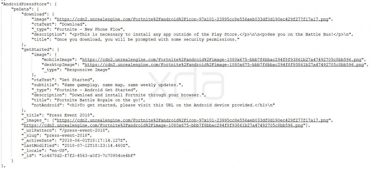 اما منبع این خبر کجاست و آیا می توان به آن استناد کرد؟ وب سایت XDA Developers چند خط از کد برنامه فورت نایت موبایل را منتشر کرده است که نشان میدهد اپیک گیمز چگونگی دسترسی سایلود به بازی را به کاربران آموزش میدهد. علاوه بر این کاربران ردیت نیز با دسترسی به تصاویر اولیه به دستورالعمل های بازی به این نتیجه رسیده اند که فورت نایت در محیطی خارج از گوگل پلی عرضه خواهد شد.