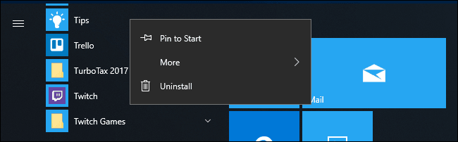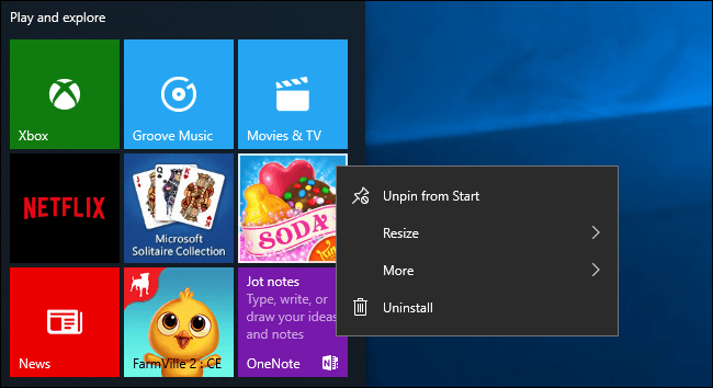 این قابلیت اکنون به صورت آزمایشی در پیش نمایش Insider ارائه شده است و عملکرد آن بسیار ساده خواهد بود. تنها کافی است تا وارد منوی Start شوید و بر روی آیکون برنامه کلیک راست نمایید. سپس با انتخاب گزینه Uninstall می توانید برنامه ی مورد نظرتان را حذف کنید. در ادامه لیست برنامه هایی که قادر به حذف آن خواهید بود را ارائه خواهیم کرد:
