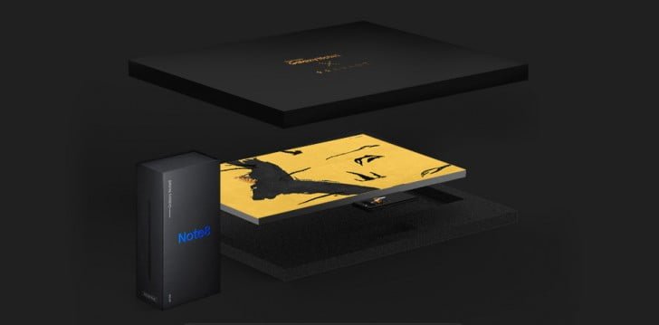 علاوه بر نسخه خاص گلکسی نوت 8، در بسته بندی این گوشی یک قاب محافظه با طرح ببر و امضای هنرمند در داخل آن را دریافت خواهید کرد. بنابراین نیازی نیست که بین محافظت از گوشی در برابر ضربه و نمایش دادن آثار هنری روی آن، تنها یکی را انتخاب کنید. یک تابلوی نقاشی پرینت شدهی جداگانه با ابعاد 69×45 سانتیمتری نیز به همراه گوشی وجود دارد که می توان آن را به دیوار خانه آویزان کرد. تمامی این 99 دستگاه دارای کد 8 رقمی منحصر به فردی می باشند که صحت این دستگاه و لوازم جانبی آن را تأیید می کند.