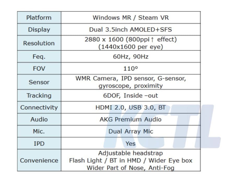 از دیگر ویژگی های هدست باید به هدفون های یکپارچه AKG، سنسورهای ارتقایافته، میکروفون داخلی و برخی دیگر اشاره کرد. باتوجه به جدول انتشاریافته، سامسونگ می خواهد صفحه نمایش AMOLED+SFS را در ادیسه جدید به کار گیرد. تاکنون سامسونگ چنین پنلی را برای هدست واقعیت ترکیبی ادیسه در نظر نگرفته از این رو باید مشخصات آشکاری را قابل توجه دانست.