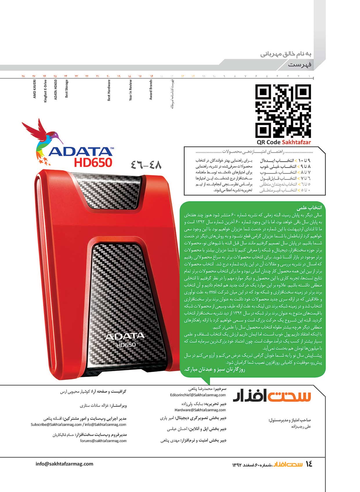 شماره پایانی نشریه سخت افزار را مانند گذشته به برترین محصولات سال اختصاص دادیم. البته امسال کمی سنت‌شکنی کردیم و به شرکت های وارد کننده محصولات برتر لوح تقدیر هم دادیم (البته نه از آن نوع لوح تقدیری که بعضی مواقع داده می‌شود!). در کنار محصولات برتر سعی کردیم بعضی بررسی ها را هم داشته باشیم تا سبد کاملی را تقدیم حضور شما عزیزان کنیم.
