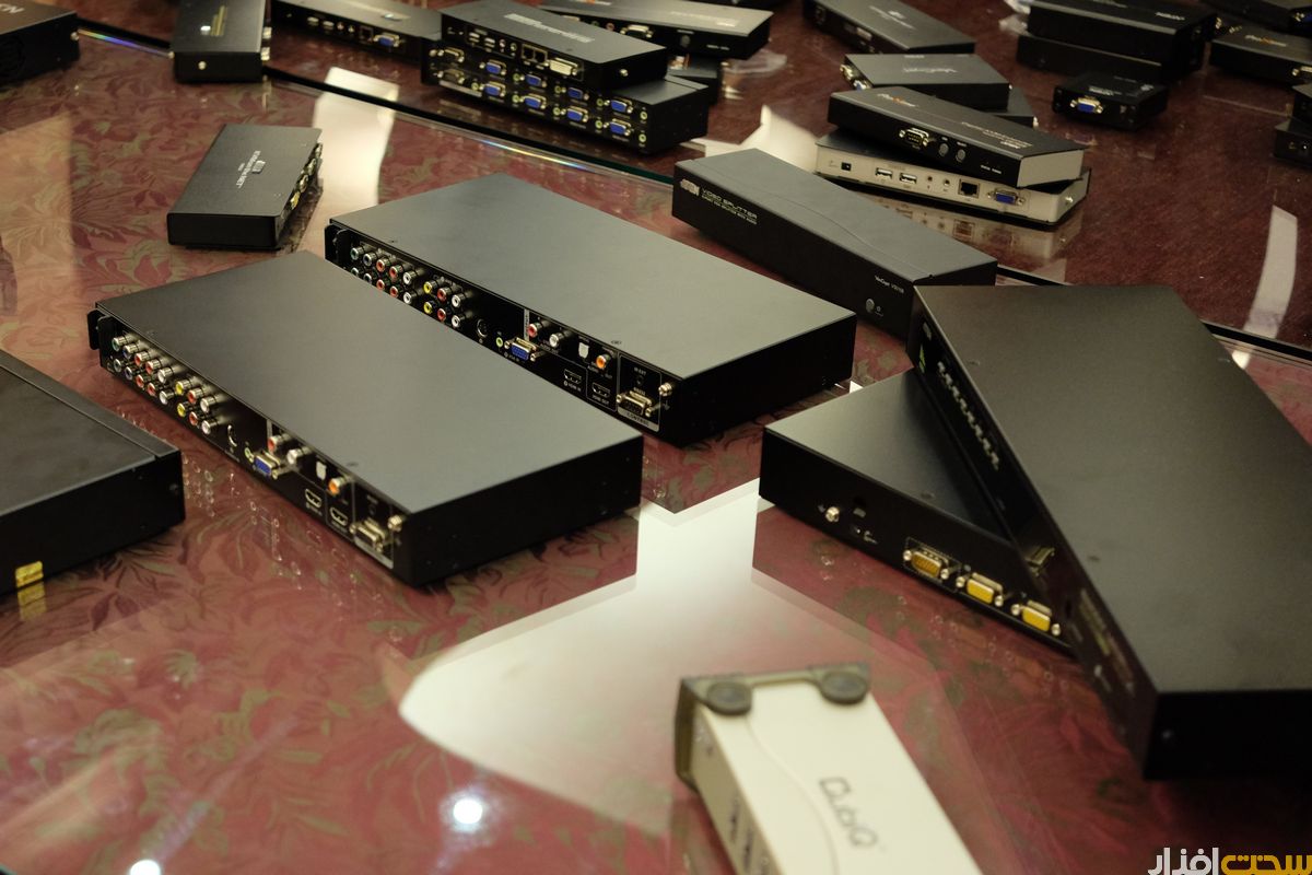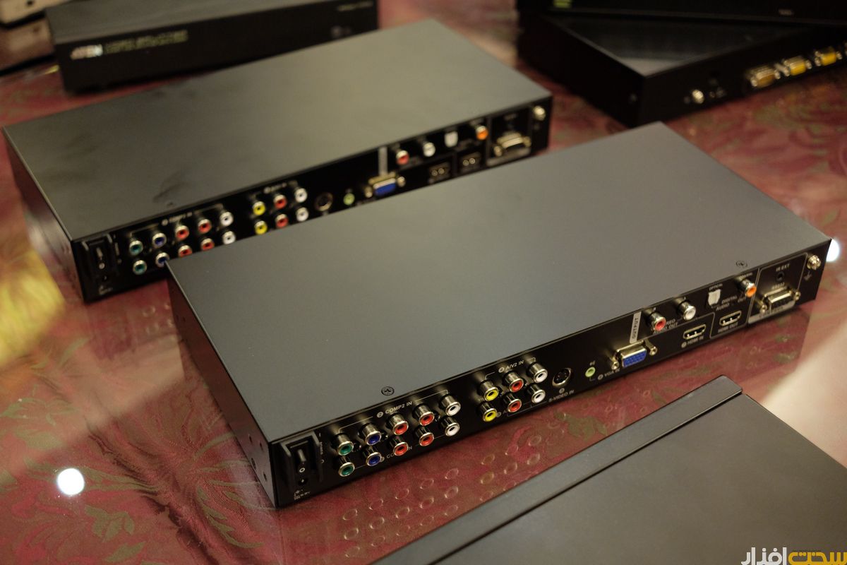 علاوه بر تجهیزات سخت افزاری، ATEN در زمینه نرم افزار نیز فعالیت می کند. سویچ های ویدئویی اختصاصی Video Wall ها همگی دارای نرم افزار اختصاصی مدیریتی هستند که به طور رایگان به همراه دستگاه ارائه می شود. همچنین ATEN یک نرم افزار مدیریتی به نام CC2000 نیز ارائه کرده است که می توان با تعریف انواع دستگاه های موجود در سیستم شبکه سازمان یا اداره (از سرور ها گرفته تا ابزار های مدیریت توان و KVM ها) در این نرم افزار، با یک آدرس IP و کلمه عبور امکان مدیریت تمامی این موارد از یک نقطه فراهم می شود. انتقال اطلاعات در این نرم افزار نیز از طریق سیستم رمزنگاری اطلاعات 128 بیتی صورت میگیرد تا امنیت انتقال اطلاعات تضمین گردد. کسانی که می خواهند مدیریت کاملی روی کنفرانس های خود داشته باشند نیز می توانند به سراغ Control Box بروند. این مجموعه که برای سیستم عامل iOS طراحی شده و یک دستگاه سخت افزاری نیز در اختیار دارد، به کاربر این امکان را میدهد تا بخش های مختلف اتاق کنفرانس شامل ویدئو پروژکتور، پرده نمایش، و حتی نور محیط را از طریق آیفون یا آیپد کنترل کرده و جلسه را مدیریت کند. در میان ابزار هایی که در سالن جلسه حضور داشت، چشممان به یک مبدل پسیو DisplayPort به VGA خورد. از کارسیگنارا پرسیدیم آیا برنامه ای برای ارائه این مبدل ها و به خصوص مدل های اکتیو در بازار ایران را دارند و ایشان گفتند که ماه مارس می توانیم شاهد عرضه این محصولات در بازار ایران باشیم. این مبدل ها برای کسانی که می خواهند چندین صفحه نمایش را به صورت Eyefinity یا Surround به کارت های گرافیک AMD یا NVIDIA نصب کنند بسیار ضروری است. برای اطلاعات بیشتر درباره این برند می توانید به سایت www.ATEN.com و سایت رایمند رایانه نماینده رسمی ATEN در ایران مراجعه کنید.