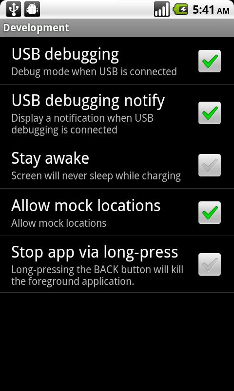 Setting –> Applications –> Developmnet –> Usb Debugging