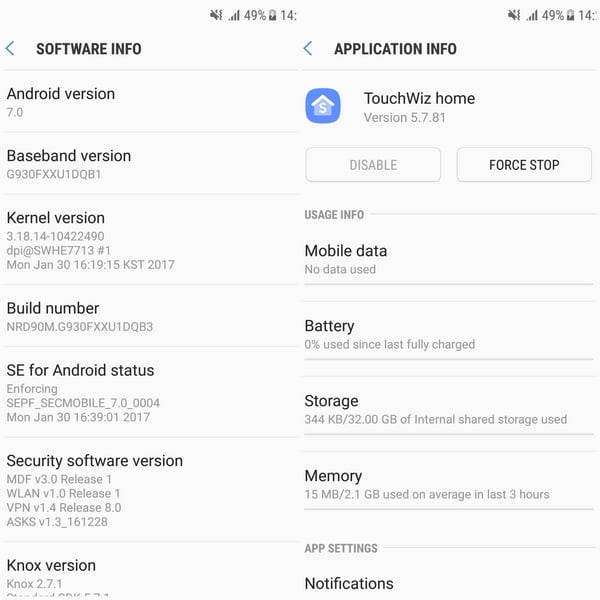 - کش و دیتای برنامه ی Touchwiz Home را از داخل تنظیمات دستگاه پاک کنید.