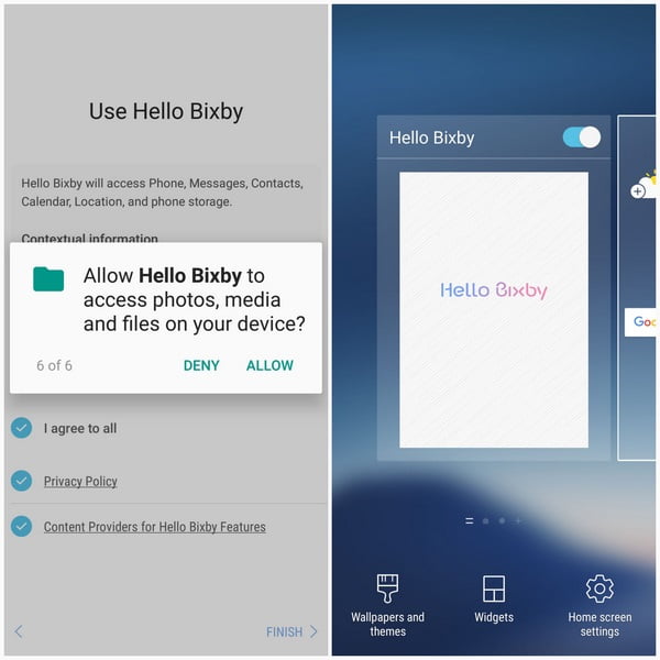 - برای راه اندازی بیکسبی انجام مراحلی مانند موافقت با دسترسی ها لازم است. تمام دسترسی های خواسته شده را قبول کنید.