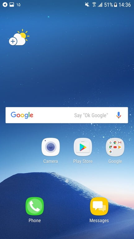 - دکمه ی هوم را فشار دهید. اکنون میبایست با صفحه ی هوم مشابه گلکسی اس 8 روبرو شوید.