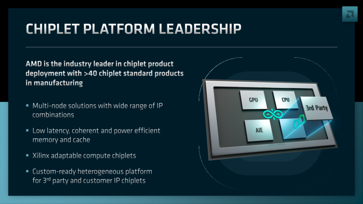 تیم سرخ همچنین نسل چهارم معماری Infinity خود را نیز معرفی نموده که به این شرکت اجازه می‌دهد از هر دو چیپلت‌های 2.5 بعدی و 3 بعدی در یک سیستم یکپارچه استفاده کند در حالی که حافظه به اشتراک گذاشته شده، استفاده از FPGAها (مربوط به زیر مجموعه Xilinx) و دیگر IPها نیز در آن قابل تعبیه هستند.