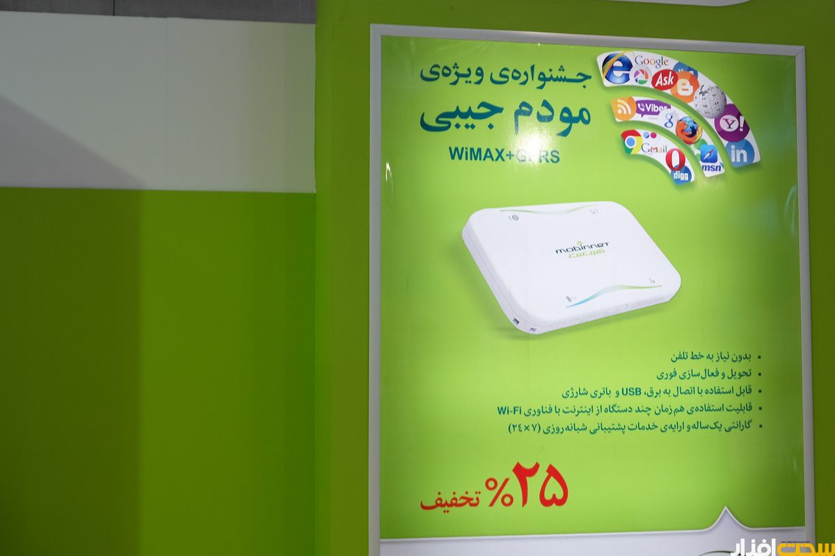 مبین نت دارای چند غرفه در سالن های مختلف است، اما به نظر میرسد بخش اصلی در همان سالنی است که همراه اول حضور دارد. مبین نت مودم های جیبی خود را با تخفیف ویژه نمایشگاه عرضه می کند. همچنین سرویس جدید WiMo نیز که به گفته مبین نت نخستین شبکه وای فای رایگان نام داشته و بیشتر برای سازمان ها و مکان های خاص در نظر گرفته شده، جزو مواردی است که مبین نت روی آن تاکید دارد. خوشبختانه مبین نت در غرفه خود از ماشین استفاده نکرده است!