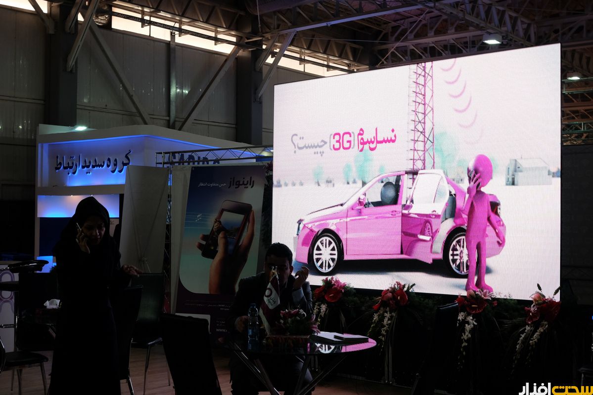 اولین ارائه دهنده اینترنت نسل سوم نیز غرفه بزرگی در اختیار دارد که شامل بخش های مختلف قرار گرفته در یک ردیف است. در زمان بازدید ما (صبح چهاردهم مهر) هنوز بخش هایی از غرفه به طور کامل راه اندازی نشده اند و اطلاعات چندانی نمیتوان از آن ها کسب کرد. رایتل هم به ماشین علاقه داشته و در ویدئویی که در یکی از بخش ها در حال پخش است، از ماشین در نصویر استفاده شده است.