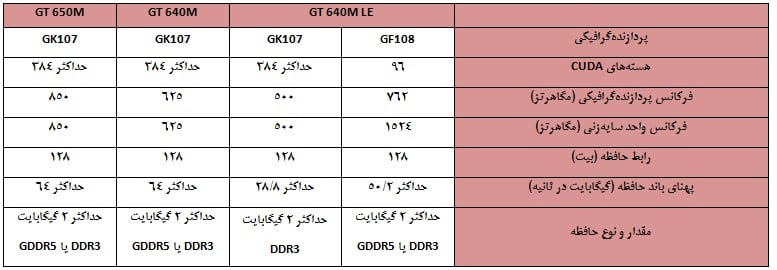 کارتگرافیک GT 650M در گروه Performance قرار گرفته اما از نظر مشخصات فنی کمی از GTX 660M بالاتر است! پس نباید انتظار داشتهباشیم که در بخشی (مانند هستههای CUDA یا حافظه) این کارتگرافیک ضعیفتر از GTX 660M باشد.
