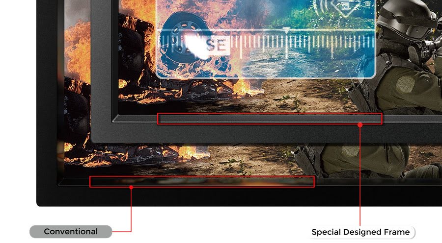 فریم پنل براق در نمایشگر های مخصوص بازی سبب بازتاب نور صفحه نمایش و در نتیجه خستگی زودرس چشم کاربران می شود. با توجه به دریافت بازخورد از گیمرهای e-Sports، طراحان کمپانی بنکیو از فریم مات در پنل نمایشگر های مخصوص بازی خود بهره می برند. با به کارگیری فریم مات در نمایشگر، تمام توجه گیمرها روی بازی متمرکز می شود.