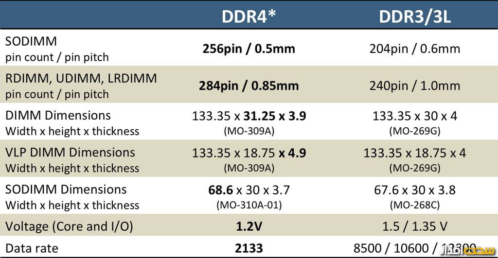 وارد بازار می شود که البته در برخی مشخصات دیگر نیز جزو اولین ها خواهد بود. قدرتمندترین پردازنده این خانواده در سوکت LGA2011 به 36 رشته پردازشی، 45 مگابایت حافظه نهان در سطح L3 مجهز می شود و از حافظه به صورت چهار کاناله با فرکانس 2400 مگاهرتز به صورت استاندارد پشتیبانی خواهد کرد. برای اولین بار قرار است با رونمایی از سری Haswell-EP در بخش پردازنده و مادربورد های سرور، پشتیبانی از حافظه DDR4 (تصویر 4)