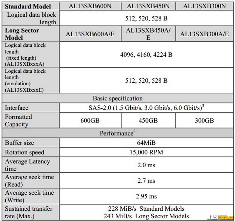 توشیبا به عنوان یکی از تولید کنندگان تجهیزات ذخیره سازی، در نظر دارد تا هارد دیسک های جدیدی با سرعت 15000 دور در دقیقه تولید کند. هارد دیسک های سری AL13SX توشیبا با ضخامت تنها 1.5 سانتی متر، در سه ظرفیت 300، 450 و 600 گیگابایت تولید خواهند گردید. توشیبا موفق به قرار دادن 512 سکتور در هارد دیسک 600 گیگابایتی و در استاندارد 2.5 اینچ گردیده که پیش از این تنها در هارد دیسک های 3.5 اینچی با ظرفیت 1 ترابایت مورد استفاده قرار می گرفت.