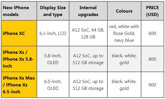 اساسا، هر سه دستگاه ارتقاء های ارزشمندی پیدا خواهند کرد علاوه بر اینکه شبیه یک نسخههای قبلی به نظر می رسند؛ همچنین بر اساس گزارش Bloomberg اپل امسال به پایان استفاده از کلمه Plus برای نام گذاری محصولات خود فکر می کند و نام گذاری دو محصول قوی خود با استفاده از عبارت Xs به این گفته صحت می بخشد.