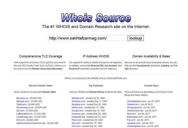 نام دامنه اينترنتي يا آي پي سايت را بدهيد، مشخصات کامل و تمامي اطلاعات مربوط به آن را مشاهده کنيد.
