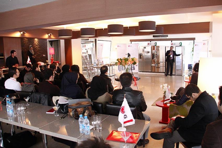 اینجا رستوران لیمون واقع در خیابان شیراز جنوبی است. یک ظهر سرد زمستانی اما با یک همایش دیگر ال جی آن هم از نوع واقعا گرمش! انگار نه انگار که تو میهمانی و آنها میزبان. گفتگوی صمیمی خبرنگاران با مدیران شرکت گلدیران و دفتر کره ال جی را در هر کجا می توانی ببینی و این مثال بارزی است از تجربه 20 سال حضور فعال این شرکت نام آشنای بازار ایران. بعد از یک پذیرایی مختصر، جناب آقای صفارزاده مدیر مراسم و تشريفات شرکت گلديران ضمن خوش آمدگویی به دوستان خبرنگار به اهداف این همایش اشاره نمودند که در ادامه خواهید خواند. سپس جناب آقای توتون چی از کارشناسان آموزش شرکت گلدیران به ارائه توضیحاتی درباره محصولات جدید خانگی ال جی پرداختند که ما به اختصار به شما ارائه می دهیم.