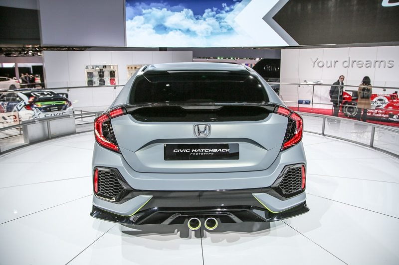 مشخصا تغییرات زیادی در عقب خودرو اتفاق افتاده، جایی که توسط یک اسپویلر ( باله ) قسمت شیشه عقب و چراغ های ترمز از هم جدا شده اند ( کاری که هوندا به آن علاقه مند است ). همچنین تمام نگرانی های شما بابت جریان هوای پشت خودرو توسط این اسپویلر و اسپویلر کوچک روی سقف مرتفع خواهد شد. نمای خروجی اگزوز متمرکز نیز بسیار عالیست. تا اینجا تیپ SPORT TUORING بخوبی ظاهر شده اما ما راجع به مدل TYPE-R که سال آینده عرضه میشود هیجان بیشتری داریم.