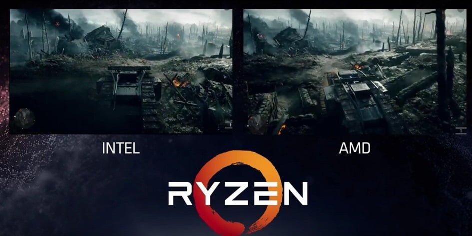 خانم لیزا سو به مصرف انرژی تا 45 وات کمتر اشاره کرد. Handbrake دومین آزمون بین این دو پردازنده بود که در نهایت RYZEN با مدت زمان 54 ثانیه و پردازنده اینتل نیز با صرف زمان 59 ثانیه یک نسخه آزمایشی را رندر گرفتند. در سومین آزمون، AMD پردازنده های مورد بحث را در یک پلتفرم سخت افزاری مشابه با کارت گرافیک های TITAN X به چالش کشید. این پلتفرم ها به اجرای بازی Battlefield 1 در دقت 4K پرداختند. یکی از نکات گیج کننده این بخش نیز عدم استفاده از کارت گرافیک Vega در این کامپیوترها بود. متاسفانه اطلاعات چندانی از نرخ دقیق فریم در این زمینه وجود ندارد اما برخی از مشاهدات حاکی از برتری نسبی RYZEN است. (به طور حتم RYZEN) در این آزمون برتر بوده است؛ هر چند کم، اما AMD آزمون هایی را که این پردازنده در آنها مقلوب شود را طراحی نکرده بود). از سوی دیگر ظاهرا توانایی RYZEN در برابر یک پرچمدار گران قیمت (Core i7-6900K) اثبات شده است. از جمله دیگر انتقادات وارده از سوی کاربران به این کنفرانس، عدم استفاده از قابلیت Turbo در پردازنده Core i7-6900K است. این پردازنده ها با توجه به معماری خود، توانایی اصلی و پرفورمنس بهبود یافته را تنها در زمان استفاده از قابلیت Turbo Boost نمایش می دهند.