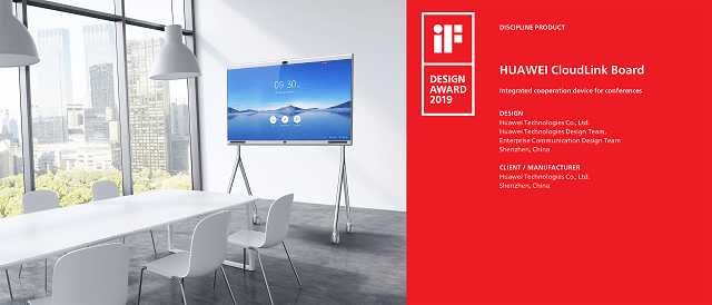 Huawei CloudLink Board که محصولی از بخش «ارتباطات سازمانی» هوآوی است، به عنوان برنده مراسم iF Design Award امسال شناخته‌شد؛ مراسمی که از آن به عنوان «اسکار طراحی» هم یاد می‌شود. این محصول یک دستگاه «حضور از راه دور مشارکتی» (Collaborative Telepresence)‌ است، به خاطر سبکی، زیبایی، طراحی یکپارچه (all-in-one)، ظاهر مینی‌مال و تاکید روی سه ویژگی کارایی، قدرت و هیجان برنده دو جایزه از این مراسم شده است.