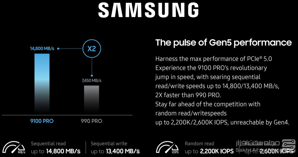 - حافظه اساسدی 9100 Pro 2TB سامسونگ بدون شک تا به امروز تکامل یافته ترین و پرقدرتترین حافظه SSD نسل پنجمی دنیاست.