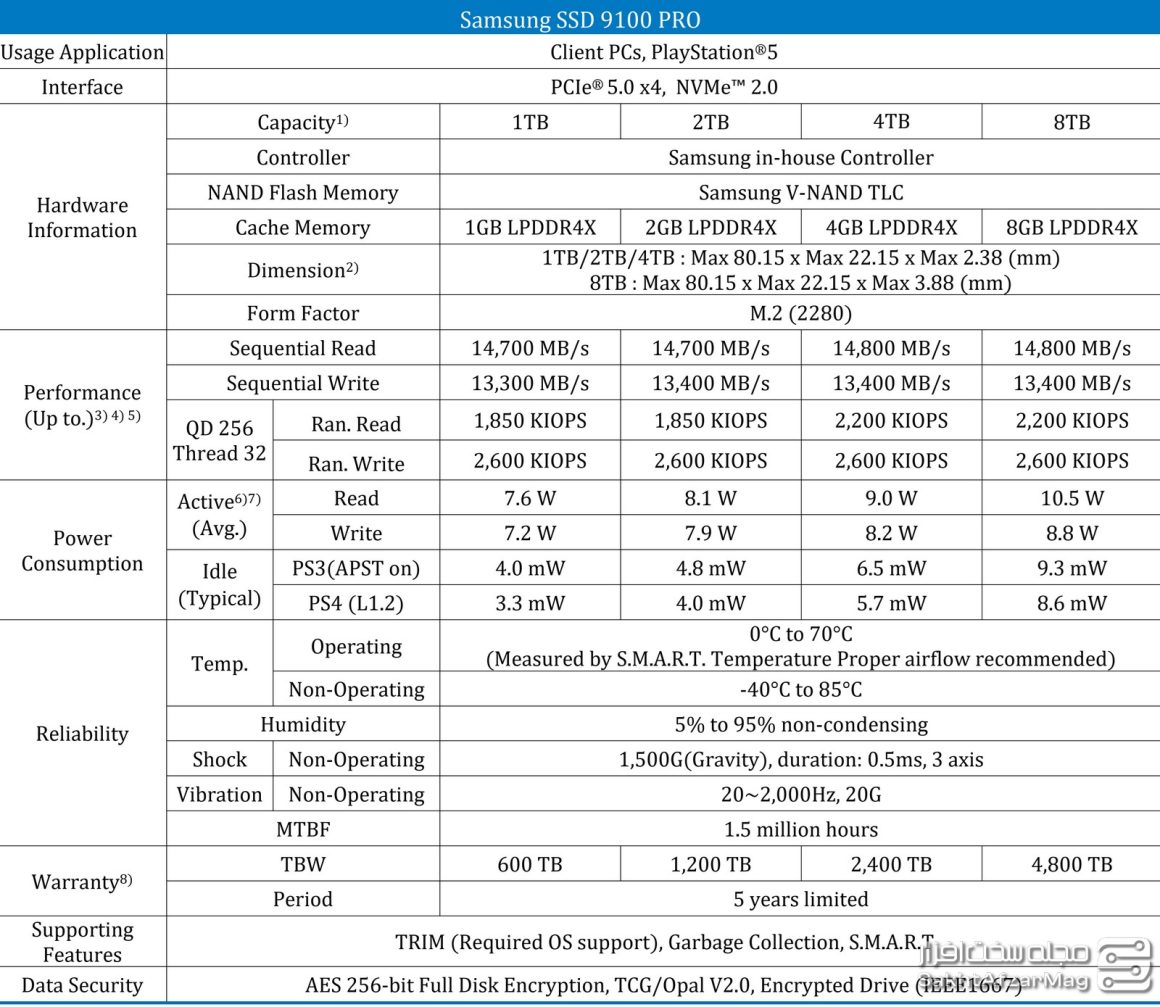 حافظه 9100Pro 2TB بار دیگر برتری سامسونگ را در تولید یک SSD تمامعیار به رخ کشید. سامسونگ یک مزیت منحصربهفرد دارد که دیگران ندارند و آن توانایی تولید یک SSD کامل تنها با استفاده از قطعات کاملاً داخلی سامسونگ است.