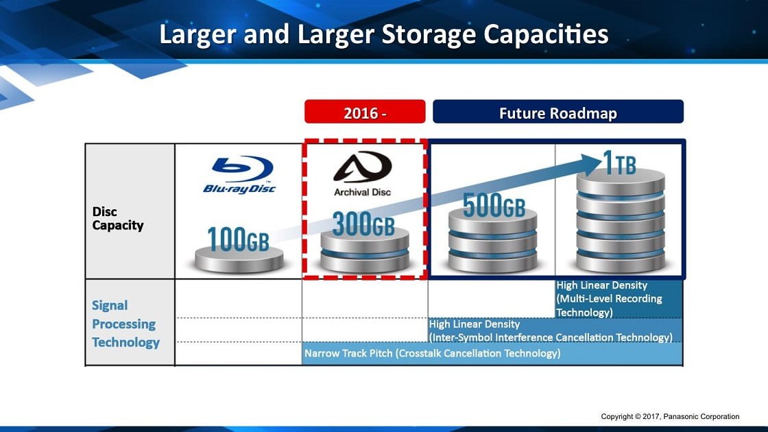 اخیراً پاناسونیک اعلام کرده است که تصمیم به تولید نسل بعدی دیسک های نوری گرفته است. این کمپانی پروژه ی خود را با شرکت سونی آغاز کرده و تاکنون توانستند با همکاری یکدیگر ظرفیت دیسک های نوری را به 500 گیگابایت افزایش دهند. پاناسونیک قصد دارد تا در این تولیدات ظرفیت دیسک های نوری را به 1 ترابایت برساند. این دیسک ها Archival disc نام دارند و پاناسونیک ادعا کرده است که این محصول تا بیش از 100 سال از اطلاعات نگهداری خواهد کرد. ظرفیت بالای این دیسک های نوری به دلیل کوچک کردن حفره ها و بهبود طول موج لیزر ها امکان پذیر شده است. پاناسونیک در Archival Disc، از 2 فناوری جدید برای جای دادن 300 گیگابایت در هر دیسک استفاده کرده است.