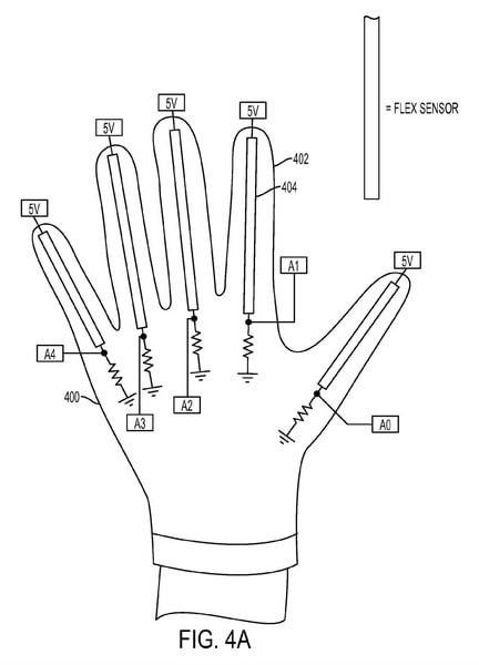 با توجه به این پتنت،  این دستکش به انوع مختلفی از مکانیسم های ورودی مجهز شده است که شامل سنسور های انعطافی و سنسور های ارتباطی میشود. سنسور های انعطافی همان طور که از اسمشان پیداست هرگونه حرکات انعطافی را که در ارتباط با دستکش هستند را تشخیص میدهند . سنسور های ارتباطی نیز هر گونه ارتباط با اشیا دیگر توسط دستکش را مانند ارتباط یک انگشت با انگشت دیگر یا ارتباط با کف دست را ثبت میکنند. همچنین این پتنت اشاراتی به “ماژولار ارتباطی” نیز دارد که اطلاعاتی که توسط هر دو سنسور ارتباطی و انعطافی منتشر میشود را جمع میکند و برای انجام فرآیند های پردازشی اطلاعات به دستگاه اصلی ارسال میکند تا موقعیت انگشت کاربر را بسنجد. نتیجه ی موقعیت انگشت کاربر به هدست واقعیت مجازی ارسال میشود.