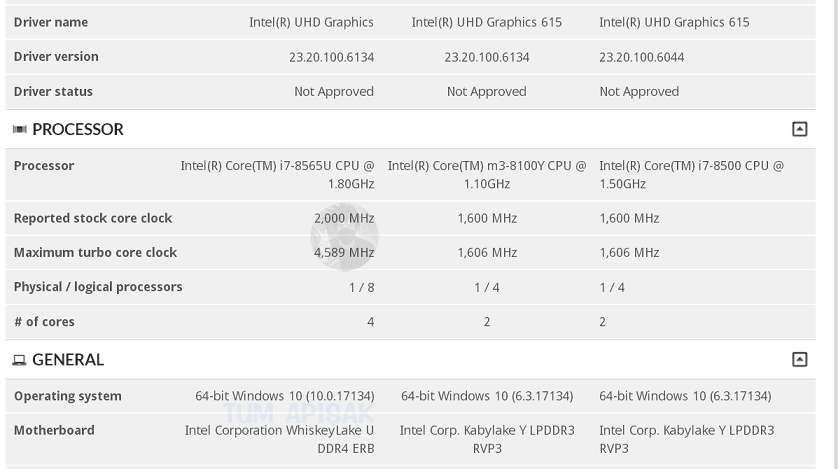 هر دو محصول به 8 مگابایت حافظه نهان سطح L3 مجهز هستند. Core i7-8565U دارای 4 هسته و 8 رشته پردازشی است. این مقادیر در Core i5-8265U به همان میزان ثابت می ماند. یکی از مشخصه های جالب توجه در 2 مدل رویت شده از Whiskey Lake-U فرکانس بسیار بالا در بخش افزایشی یا Boost است که در Core i7-8565U به 4.5 گیگاهرتز و در Core i5-8265U برابر با 3.9 گیگاهرتز است. پردازنده های Ultra Low Voltage اینتل از سالهای پیش تا کنون بر روی توان حرارتی 15 وات ثابت هستند که این یک نقطه قوت برای آنها به شمار می رود. اینتل موفق به افزایش فرکانس بدون بالا رفتن توان حرارتی شده است. گرافیک داخلی دو پردازنده دارای فرکانس 1150 مگاهرتز است.