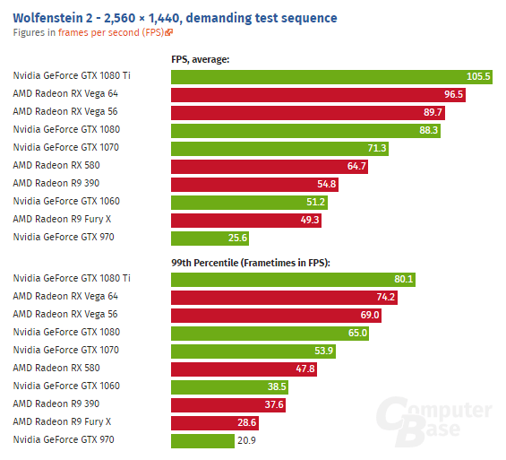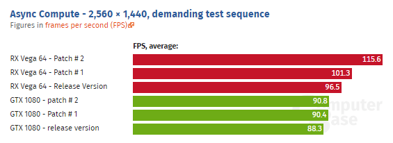 پچ جدید ولفنشتاین بیشترین تاثیر را در کارت گرافیک های AMD RX Vega 64 به همراه دارد این تاثیر در کارت گرافیک AMD RX Vega 64 به 22% می رسد! تاثیر این پچ در کارت گرافیک های NVIDIA به 3% و در کارت گرافیک های Polaris همچون RX400 و RX500 ها نیز 10% است. در نتیجه ولفنشتاین به صراحت کارت گرافیک های AMD Vega را هدف اصلی بروزرسانی خود قرار داده است.