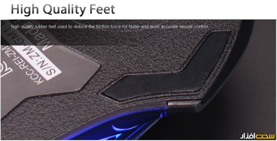 در زوایای قسمت زیرین ماوس، از کائوچو برای حرکت دادن آسان تر ماوس روی سطوح مختلف بهره گرفته شده که کار کردن با ماوس را در هر مکانی لذت بخش و آسان خواهد کرد.
