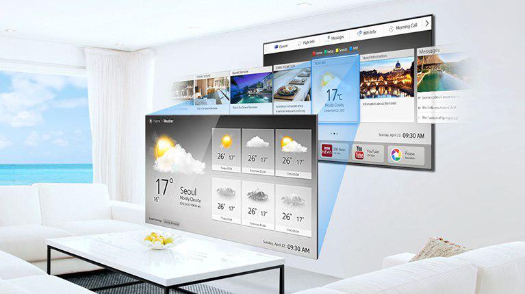 با استفاده از منوی Home در نمایشگرهای هتلی سامسونگ، بدون نیاز به خرید جداگانه راهکار یا زیرساخت شبکه میتوانید محتواهایی بسیار متنوع را برای مهمانان خود پخش کنید. این قابلیتهای جدید به هتلها امکان میدهد با یک ویدیوی کوتاه به مهمانان خود خوشآمدگویی کرده و یا لوگوی هتل را در زمان پخش برنامههای عادی روی صفحه تلویزیون بیاندازند. به این ترتیب بدون نیاز به خرید راهکاری مجزا میتوانید برند خود را تبلیغ کنید. در عین حال مهمانان نیز میتوانند به راحتی به اطلاعاتی مانند زمان، تاریخ و اطلاعات مرتبط با فعالیتهای هتل و یا فعالیتهای معمولی یک تلویزیون دسترسی پیدا داشته باشند. منوی Home نمایشگرهای هتلی سامسونگ کاملا قابل تنظیم است لذا هتلهایی که بودجه مالی برای خرید راهکارهای مجزا ندارند، میتوانند این منو را خودشان به هر شکلی که دوست دارند روی نمایشگرها قرار دهند.