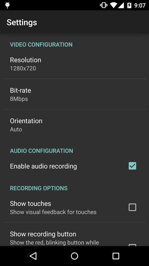 AZ Screen Recorder یک اپلیکیشن رایگان، کم حجم و خوش دست است که می توانید آن را از گوگل پلی دریافت کنید (البته فایل نصب آن را نیز در پایین همین مطلب خواهید یافت). پس از نصب و دریافت، آن را اجرا کنید تا ویجت کوچکی ظاهر شود که در واقع نوار ابزار اپلیکیشن به حساب می آید. در این ویجت چهار شکلک مختلف می بینید که از چپ به راست به ترتیب برای ثبت ویدیو، ورود به تنطیمات، گالری و خروج از برنامه به کار می روند. می توانید صاف سروقت تهیه ویدیوی خود بروید و یا یک سری به بخش تنظیمات بزنید که ساختاری مختصر و مفید دارد و در آنجا مواردی چون وضوح ویدیو، نرخ انتقال داده (موثر در نرخ فریم ها) نمایش محل تماس انگشت و ضبط صدا از میکروفون را مدیریت کنید.