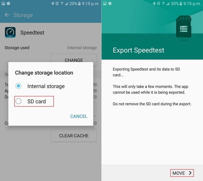 برای انتقال اپلیکیشن های خود به کارت حافظه کار چندان سختی را پیش رو ندارید. برای انجام این کار ابتدا شما باید به منوی Applications گوشی خود که در قسمت Settings قرار دارد دسترسی پیدا کنید. سپس باید به منوی Application Manager رجوع کرده و اپلیکیشنی را که قصد جابجایی آن را دارید انتخاب کنید. در این قسمت شما وارد صفحه ی Application info شده اید که در این جا شما باید گزینه ی Storage را انتخاب کنید. در قسمت Storage Used شما میتوانید مشاهده کنید که اپلیکیشن انتخابی شما در کدام حافظه قرار گرفته است. اگر برنامه ی مورد نظر شما در حافظه ی داخلی ذخیره شده است، شما میتوانید با انتخاب گزینه ی SD Card برنامه ی مورد نظر را به کارت حافظه انتقال دهید.