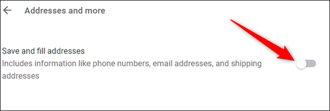 در کنار گزینه Save and fill addresses یک کلید قرار دارد که کافیست تا آن را خاموش کنید تا غیر فعال شود.